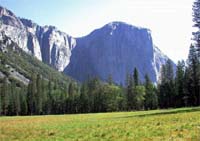 El Capitan Im westlichen Eingangsbereich des Yosemite Valleys ehebt sich El Capitan, ein fast senkrecht aufsteigender Felsklotz mit 2.307 m Höhe. Der Koloss mißt vom Talboden 1.200 m und ist damit der größte Granitmonolit der Welt - die absolute Herausforderung für die Superprofies unter den Bergsteigern, von welchen man nachts die Laternen in den Biwaksäcken in der Steilwand leuchten sieht.