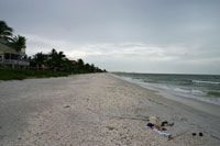 5. Tag: Von Naples zu Bekannten nach Cape Coral Es regnet noch immer, wie es am Vortag gegen Abend angefangen hat. Das Frühstück wird an einer art Poolbar im Freien bereitgestellt, die meisten Motelgäste nehmen sich ein Tablett mit aufs Zimmer. Wir hatten Glück, gerade als wir mit unserem Frühstück in Richtung Zimmer unterwegs sind wird ein - nicht nur mit einem viel zu kleinen Schirm - überdachter Tisch frei. Der Regen ist leicht, ohne Wind und warm, in der Umgebung Palmen, Bambus und Bananenstauden - ein herrlicher Tropentag. Wenn man im trockenen sitzt ist es ganz interessant. Eine Deutsche wartet stehend mit einem Nutellaglas in der Hand unter einem Sonnenschirm auf die Familie. Typisch deutsche Manier: Erst einmal einen Platz reservieren, auch wenn er in diesem Fall nicht der Allerbeste ist. Man merkt ihr das Unwohlsein auch deutlich an, man könnte ja auch etwas nass werden. Aber sie hat Glück und ein Nachbartisch, der wie unserer großzügiger Überdacht und Wasserdicht ist, wird frei. Nach dem Frühstück setzen wir uns noch in den Yakuzee, was einige fragende Blicke der "Frühstücker" nach sich zieht, aber der Regen stört uns nicht - im Wasser wird man eh nass. Bevor wir nach Cape Coral aufbrechen verfallen wir noch im TJ Max dem Kaufrausch. Schon wieder wird ein Trolley gekauft, dieses mal ein kleiner fürs Handgepäck und von Tommy Hillfiger. Der Trolley hat einmal $300 in der uvp gekostet und wird hier für $50 verkauft. Wer da nicht zulangt ist selbst schuld, auch wenn der Dollar wieder stärker ist. D
