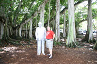 Vom Edison Muesum geht es weiter nach St. Petersburg in die Innenstadt zum Yachthaven und Pier (2nd Ave NE). Am Ende des Piers steht eine umgedrehte Pyramide, von deren Dach eine schöne Aussicht über St. Petersburgh zu haben ist. Natürlich ist die Pyramide vollgestopft mit Gift Shops und Fast Food, aber dafür kostenlos erklimmbar - sowas würde doch bei uns zuhause bestimmt Eintritt kosten. Von hier aus kann man auf einer schwimmenden Kriche heiraten und eine Hochzeitsgruppe kommt gerade an uns vorbeigeschwommen. Irre, auf welche Ideen man kommen kann.