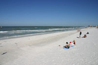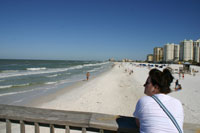 7. Tag: Von St. Petersburg nach Orlando Die Nacht war gut, das Frühstück des Best Western am Flughaven St. Petersburg eines der schlechtesten, die wir bisher hatten. Wir machen uns auf in Richtung Strand, und wieder geht es über eine Brücke über die Tampa Bay. Die Brückenfahrten sind recht imposant, da sie neben der Weite an einer Stelle eine deutliche Höhe erreichen, so dass auch größere Schiffe und Segelschiffe diese unterfahren können. I Beim Strand finden wir einen guten und bereits bezahlten Parkplatz und machen uns auf zum Pier. So wie es aussieht geht der Sandstrade die gesamte Küste hinunter, ein schöner weißer und feinkörniger Sandstrand. Für alle, die nicht in der Sonne liegen wollen weden auch Liegen mit Sonnenschirm angeboten - und kosten "günstige" $18 den Tag. Im Wasser tummeln sich Pelikane, die teilweise über dem Wasser fliegen und dann mit einem lauten Platschen ins Wasser stechen und abtauchen - die Masse muss halt das Wasser verdrängen.