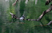 Ein Holzsteg fürht vom Parkplatz aus am Bach entlang bis zur Mündung in den Fluss. Sumpfwälder säumen den Wegrand und das Wasser im Bachlauf ist glasklar. In der Mündung entdecken wir dann auch, leider nur schwach, auf der gegenüberliegenden Uferseite ein paar Manatees. Vor uns tummeln sich noch ein paar Wasserschildkröten, die ihre Köpfe aus dem Wasser strecken um dann wieder zum Grund abzutauchen - das sieht echt lustig aus.