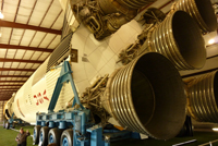 Die letzte Haltestelle ist die Apollo Rakete, die hier aufgebaut ist und in den Einzelteilen (also den 3 Stufen und der Kapsel) erklärt wird. Der Führer hier scheint keinen Kaugummi, sondern eine Monsterkartoffel im Mund zu haben, hier gebe auch ich auf und schaue mir lieber die Schautafeln an. Hier wird verstärkt auf die zukünftigen Missionen eingegangen als auf die vergangenen. Die NASA plant ja eine weitere Mondlandung, hierfür werden neue Raketen entwickelt, eine große für den Transport der Ausrüstung und eine kleinere für die Mannschaft. Geplant ist auch, eine Mondstation einzurichten, die nicht nur ein paar Tage dort verbringen soll, sondern Wochen und Monate. Die Analyse des Mondgesteins hat ergeben, dass auf dem Mond wertvolle Erze und Metalle zu finden sind und es wird über einen kommerziellen Abbau nachgedacht. Hauptzweck soll aber die Vorbereitung für die nächste Stufe der Raumfahrt sein: Ein Flug zum Mars, um diesen genauer zu erkunden.