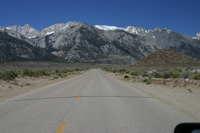 In Lone Pine tanken wir das Auto nochmals richtig voll, die Preise im Death Valley werden bestimmt rund 30% höher liegen. Die Strecke geht zwar einen Großteil gerade aus, ist aber trotzdem abwechslungsreich. Der ausgetrocknete und versalzene Owens Lake zur rechten, die Bergkette zur linken und dann durchqueren wir die Berge. Von 5000 feet geht es hinunter auf unter 1000 feet, dann wieder hoch auf über 5000 feet und zuletzt bis unter den Meeresspiegel.