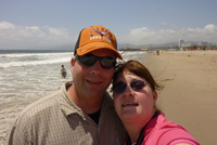 Frühstück fällt heute aus, dafür entledigen wir uns schon einmal der Sachen, die wir wegwerfen werden: Das restliche Benzin, das Restgas sowie unsere tapferen Campingstühle, die uns mittlerweile bei so einigen Urlauben begleitet haben und mittlerweile aus allen Nähten gehen. Das gibt auch wieder Potenzial beim Gepäck, so dass wir hoffentlich ohne Übergepäck unsere Einkäufe nach Deutschland bringen können. Da ist doch, trotz dem relativ schlechten Dollarkurs, einiges zusammen gekommen. Wir fahren, nach einem kurzen Stopp beim Starbucks, durch den Malibu Canyon an die Küste zurück. Entgegen den anderen beiden Streckenführungen durch den Topagna Canyon oder die Strecke über Malibu Mar Vista erklimmen wir keine Höhen, sondern der Canyon ist tief eingeschnitten durch die gesamte Bergkette bis an die Küste. Zwar ohne Aussicht, aber dafür auch schön zu durchfahren. Ohne Straße wäre das auch eine schöne Wanderung. In Santa Monica gönnen wir uns nochmals einen Strandspaziergang. Leider ist das Parkhaus am Visitor Center, in dem wir sonst auch immer geparkt hatten, mittlerweile gebührenpflichtig. War mir bisher immer unsverständlich, trotzdem schade. Dank mangelnder gebührenfreier Parkplätze stellen wir unser Auto dann an der Ocean Ave ab und ich füttere die Parkuhr mit 3 Quater, bis ich bemerke, dass die verbleibende Parkzeit bei 15 Minuten nach dem ersten Quater stehen bleibt. Und dann fällt uns auf, dass hier die Höchstparkdauer auf 15 Minuten beschränkt ist, die Uhr aber munter weiter alle Geldstücke gierig aufsaugt, ohne dann zu reagieren - toll ! Für weitere $2 finden wir dann auf der gegenüberliegenden Seite einen Parkplatz mit einer erlauben Parkdauer von 2 Stunden und machen uns auf an den Strand.
