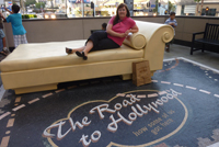 Anhand der Daten aus einer Star Map vom Santa Monica Pier, aus der die Adressen der Hollywood Stars erkennbar sind, fahren wir erst Bel Air, dann Hollywood ab auf der Suche nach dem Haus von Brad Pitt. Danke Navi war das gar kein so großes Problem, diese Adressen zu finden, und so konnten wir neben einer gigantisch hohen Hecke auch ein Stück Mauer und ein Einfahrtstor bewundern - lohnt voll !! Aber das Geschäft mit den Karten scheint gut zu laufen, angeboten werden diese an vielen Stellen. Wir stürmen nach einer kleinen und erfolgreichen Suchfahrt nach einem gebührenfreien Parkplatz den Hollywood Bvld und schauen uns das Chinese Theater, das Kodak Center und die vielen Sterne im Boden an. Geplant war, im Hardrock Cafe, das jetzt neu zwischen Chinese Theater und Kodak Center steht. Doch leider ist erst der Shop offen, das Cafe befindet sich noch im Aufbau.