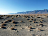 Auf der Fahrt entlang des ausgetrockneten Owens Lake habe ich auf einmal einen Schaufelraddampfer am Ufer liegend entdeckt. Selbstverständlich sind wir sofort umgedreht und durch das gottverlassene Kaff Keeler auf den schmalen "Dreck-Treck" abgebogen, der zu der Mine hinzuführen schien. Natürlich wogten die Begeisterungsstürme im Auto in und her, da meine Mitfahrer "begeisterte" Offroader sind (was bereits auf dem harmlosen Feldweg zum Little Lake Overlook einen Tag zuvor bewiesen wurde). Dabei war die Fahrt unkritisch, nur dass unser doch recht breites Auto links und rechts an den Wüstenbüschchen mit den harten Enden und Stacheln gerieben hat - die Krätzerchen lassen sich aber problemlos rauspolieren. An dem Schaufelraddampfer angekommen mussten ich aber feststellen, dass es sich eher um eine Rampf, Depot oder sonst was gehandelt hat und nur über die Entfernung wie ein Dampfer ausgesehen hat - ja, ein Versuch wars wert und der Weg ging wieder zurück auf die Straße.