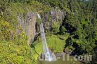 Wir halten an einem kurzen Walk durch den Busch zu einer Natural Bridge. Natürlich haben wir so ein kleines Ding erwartet, wo wir uns hinerher fragen, ob die 10 Minuten Wegzeit wirklich gut inverstiert war. Doch bereits der Weg durch Dschungel enlang eines Bächens ist ein Erlebnis, geht es auf Stegen und Hängebrücken immer tiefer in den Wald hinein. Und Hinten erwartet uns eine Natural Bridge von solchem Ausmaß, dass ich mir gewünscht hätte, mein Weitwinkelobjektiv mitgenommen zu haben - aber das liegt natürlich gut verstaut im Auto.