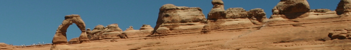Zum Pflichtprogramm gehört auf jeden Fall der Delicate Arch, einer der faszinierendsten Arche, dessen Anblick Rätsel über die Entstehung solcher Naturphänomene aufgibt. Zum Delicate Arch Viewpoint führt vom Parkplatz ein kurzer Weg (90 m), der für eine bessere Sicht steil bergauf weiterverfolgt werden kann. Von der Wolfe Ranch gelangt man, auf einem 4,8 km (hin und zurück) langen Trail über 146 Höhenmeter, zum Delicate Arch.
