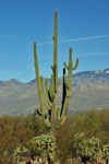 Der Saguaro wird bis zu 15 m hoch und wächste teilweise in unzähligen Verästelungen zu beinahe monströsen Gebilden. Obgleich die Saguaros noch im gesamten südlichen Arizona vorkommen hat die Popularität durch den Städtewachstum und die Zersiedelung auch in entlegenen Gebieten stark abgenommen. Im Saguaro National Park stehen diese Kaktusriesen unter Naturschutz durch die Verwaltung des National Park Service.