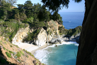 Strand zwischen dem Post Office und dem Pfeiffer Big Sur SP. Ein kleiner, unmarkierter Weg (Sycamore Canyon Road, der Weg ist rund 0,25mi südlich der Ranger Station) führt zum Beach, es ist der einzige Weg ohne Tor und wird beim Vorbeifahren gerne übersehen. Attraktion ist der ausgehölte Felsen: Von ihm aus kann man sowohl die Brandung an der Steilküste als auch die Wellen am Strand sehen und beobachten.