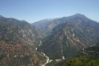 Der Kings Canyon hält bei der Einfahrt in den Canyon eine beeindrucktende Aussicht in das Tal bereit. Noch bei der Anfahrt im Sequoia National Forrest (also zwischen Grant Grove und Cedar Grove) lässt sich auf Höhe der Kings Canyon Lodge eine gigantische Aussicht in die Schluchten der Canyons genießen. Hier fließen der Middel Fork Kings River und der South Fork Kings River zusammen. Gerade im Frühjahr, wenn bedingt durch die Schneeschmelze die Flüsse richtig Wasser führen. Ein beeindruckendes Spektakel! Im Kings Canyon selbst blickt man aus einem schönen Tal auf die hohen Bergketten. Meist nicht sehr überlaufen, so dass eine maximale Erholung möglich ist.