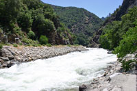 Im Tal führt die Straße vorbei an den Grizzly Falls (Picknickplatz nahe des Wasserfalls direkt an der Straße, anhalten lohnt auf jeden Fall), dem Canyon Viewpoint und den Roaring River Falls (erreichbar über einen kurzen Weg, der direkt vor dem tosenden Wasserfall endet) zum Parkplatz am Copper Creek. Von hier aus ist eine schöne Wanderung zu den Mist Falls möglich (knapp 15 km hin und zurück, das letzte Teilstück aufrund des steilen Anstiegs ziemlich anstrengend) (siehe Trails).