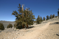 Biegt man vom US Hwy 395 in Big Pine nach Osten auf den Hwy 168 ab und folgt der Beschilderung gelangt man nach rund 31 mi zum Ancient Bristlecone Pine Forest, einem Wald mit den ältesten, noch lebenden Bäumen der Welt. Die ältesten Bäume werden auf ein Alter von rund 4.700 Jahre geschätzt. Das Schulman Grove Visitor Center informiert über die Bristlecone Pine sowie die Gegebenheiten im Forest. Von hier aus führen einige Trails unterschiedlicher Länge durch den alten Wald.