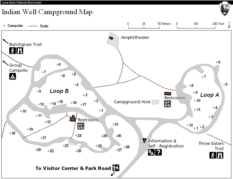 Infomaterial zum herunterladen: Campground Info, Campground Map, Fledermäuse, die Trails, die Höhlen, die Geologie, Modoc War, Parkkarte. Weitere Infos gibts online unter http://www.nps.gov/labe.